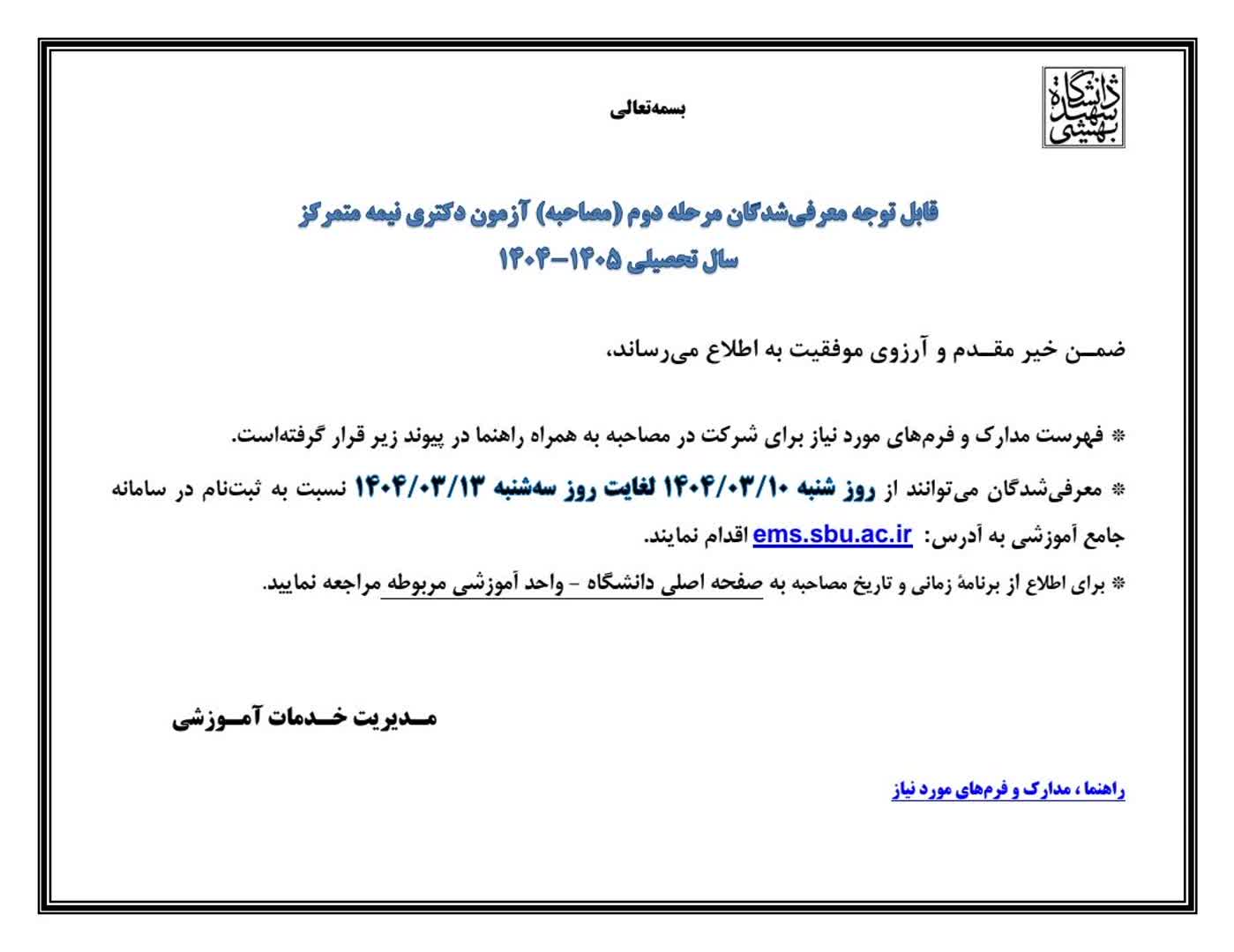قابل توجه متقاضیان دوره دکتری سال 1404